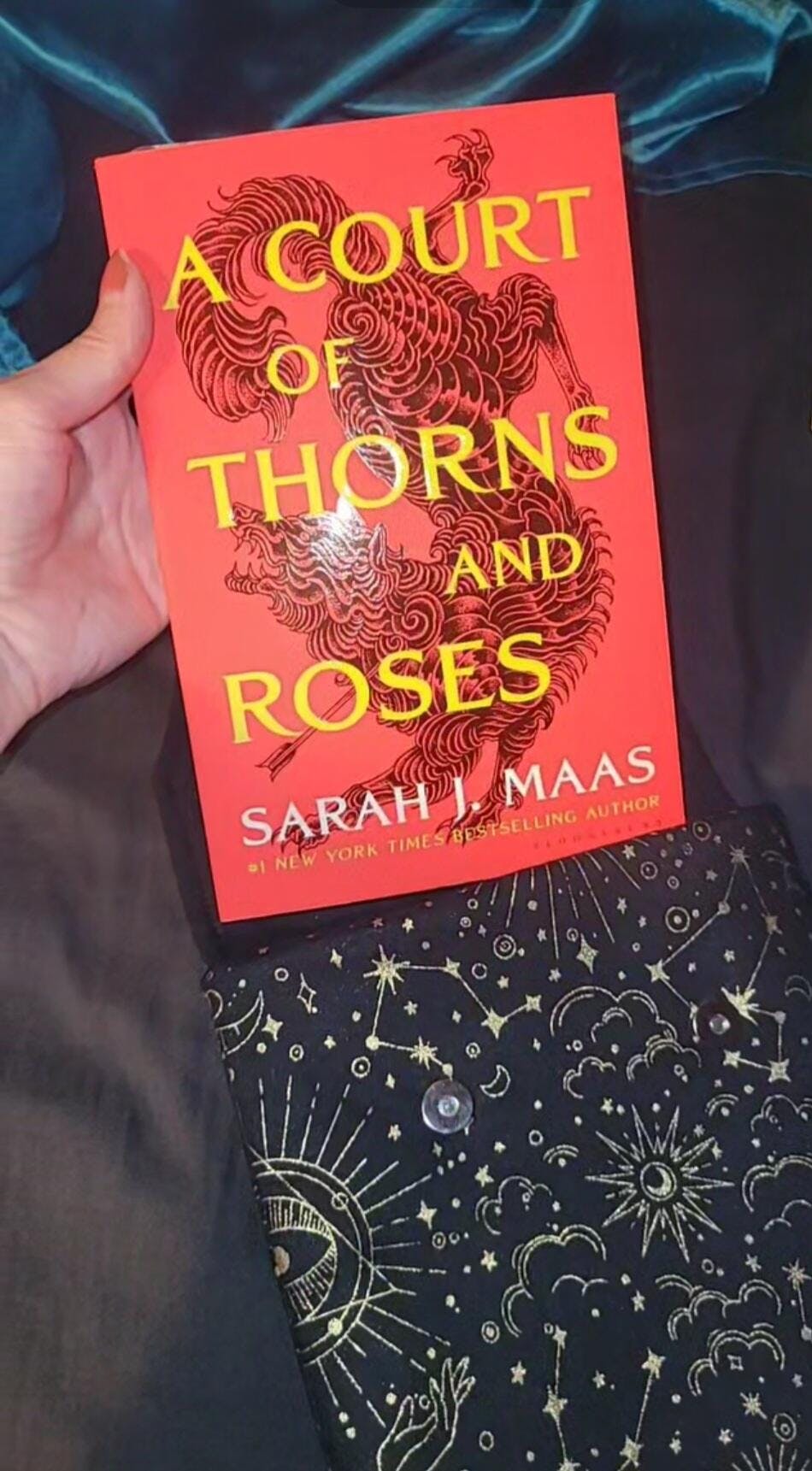 This book sleeve features a beautiful Celestial Dreams pattern with gold foil detail, designed for Charlie & Fox by Studio Saturno.