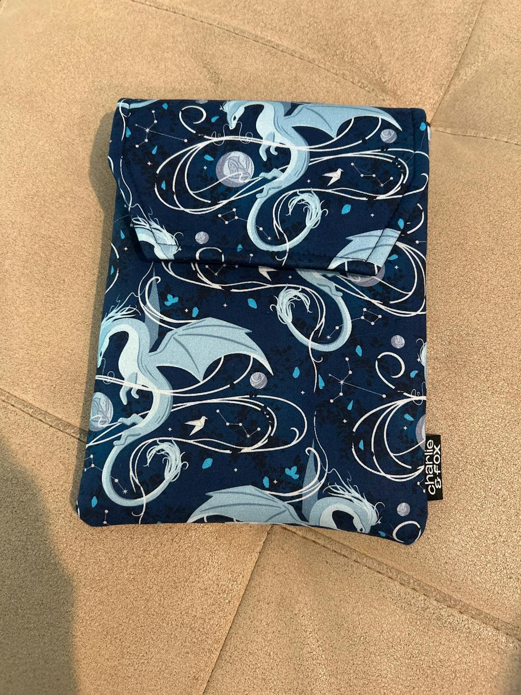 This e-reader sleeve features a magical Moonplume Dragon pattern for the book When The Moon Hatched by Sarah A. Parker, designed exclusively for Charlie & Fox by Carmen Di Mauro.